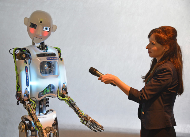 Дети визжат от восторга, посещая эту необычную выставку. Ну где ещё можно сыграть в ладушки с роботом Гретой (разработанным, кстати, учениками физико-математического лицея из Санкт-Петербурга) или сразиться в пинг-понг с роботом-теннисистом? У каждого из этих механических существ есть своё имя и родина. Бакстер, например, который на выставке аккуратно складывает друг на друга бумажные стаканчики, приехал в Россию из США. «Его особенность в том, что он легко управляем, - рассказывает продюсер Бала Наталья Хребтова. - А используется он там, где нужны монотонные действия, например, на сборке автомобилей или смартфонов. Он управляется очень легко - достаточно показать руками нужные движения, он их запоминает, а потом повторяет. Если видит препятствие, например, рядом стоящего человека, то он не будет выполнять эту операцию, чтобы не нанести травму». К примеру, «слепой» робот из Сингапура, лишённый камер, взаимодействует с миром при помощи тактильных ощущений. Он знакомится с каждым человеком, ощупывая его. Моё внимание привлекает «блондинка на колёсиках» - робот Алиса, как две капли воды похожая на живого человека. Рядом с ней - силиконовая голова Пушкина, которая не просто (ай да сукин сын!) шевелит силиконовыми губами, но и цитирует его же стихи. «Наши человекоподобные, или, говоря научным языком, антропоморфные роботы, - поясняет мне Александр Зонов, сотрудник зеленоградской компании «Нейроботикс», - являются копией реального человека. Их оболочка сделана из двухкомпонентного силикона, который используется в кинематографе для создания масок людей. В головах у этих андроидов находятся двигатели, приводящие в движение искусственные мышцы, - тем самым они демонстрируют все базовые эмоции человека. Они могут не только повторять эмоции человека, но и отвечать на вопросы. Это некоторый аналог искусственного интеллекта. Это обучающие роботы - например, Алиса может вести урок биологии, а Пушкин - литературы». Но самый больший восторг у детей вызывает огромный английский робот Титан, у которого в рамках выставки отдельное шоу. Он плавно ходит, танцует, говорит, поёт и даже плачет натуральной водой.