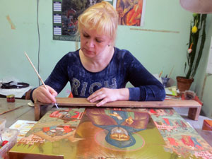 «Мы можем себе это позволить, потому что наши художники имеют богословскую подготовку, - поясняет Валентин Берсенев, директор мастерской. - Многие современные иконописцы просто копируют старые образы, боясь что-то сделать не так. Поэтому мы видим в храмах или на выставках много икон с потемневшими ликами. А ведь святых надо писать так, чтобы было видно: это и в самом деле святой человек! Мы занимаемся творчеством, вносим в иконографию что-то новое».