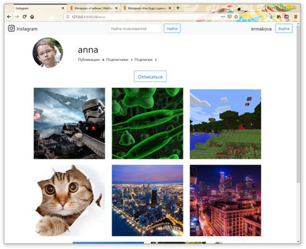 На втором курсе предлагались новые, ещё более сложные и объёмные задачи. Лизу и это не отпугнуло. Напротив, ей стало только интереснее, ведь появилась работа над проектами, максимально приближенными к задачам профессиональных программистов. Причём идеи этих проектов дети придумывали самостоятельно. Больше всего Лизе понравилось разрабатывать веб-приложения. В качестве одного из учебных проектов она взялась создавать аналог Инстаграма. Работала по 4–5 часов в день, самостоятельно разбиралась с JavaScript и CSS, и уже через неделю сервис был готов – с функциями загрузки фотографий, лайками и комментариями.