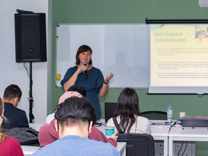 После лекции профессора МПГУ, руководителя центра «Этносфера» Е. Омельченко студенты активно задавали вопросы и обсуждали услышанное
