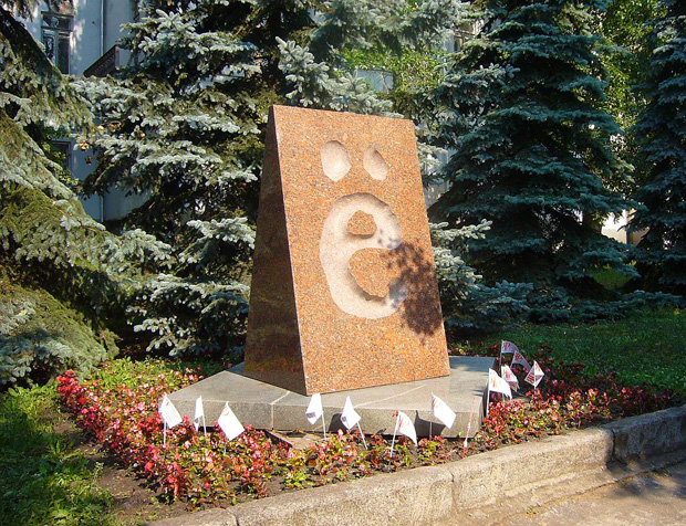 3 ноября 2005 г. в Ульяновске около Областной научной библиотеки им. Ленина был установлен памятник букве «ё». Автор скульптуры – художник Александр Зинин. Высота памятника 2,05 м. Масса более 3 т.